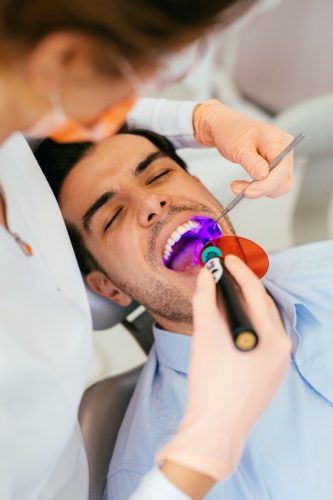 Dolgu Malzemesinin Uygulanması: Diş rengine uygun kompozit malzeme, diş yüzeyine tabakalar halinde uygulanır ve özel bir ışık ile sertleştirilir.